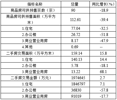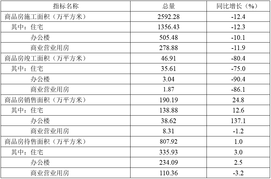 全市商品房竣工面积46.91万㎡,同比下降80.4%,其中住宅类竣工面积为35.61万㎡,同比下降75%。