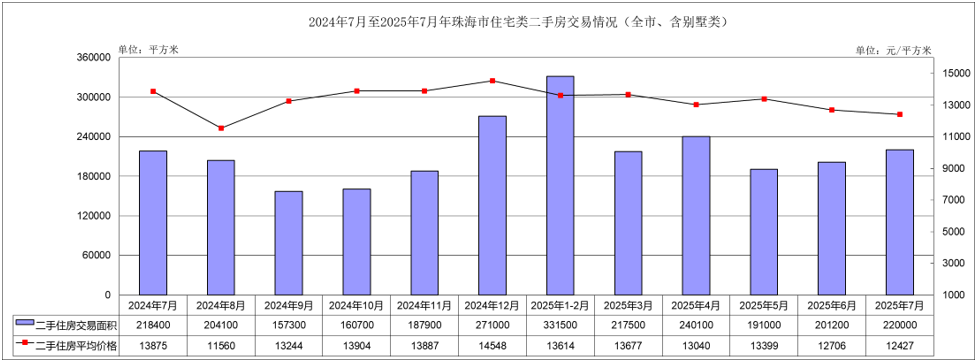 注:因珠海市统计局未公布2025年1—8月的二手住房交易情况报表,仅分析2024年7月—2025年7月情况。