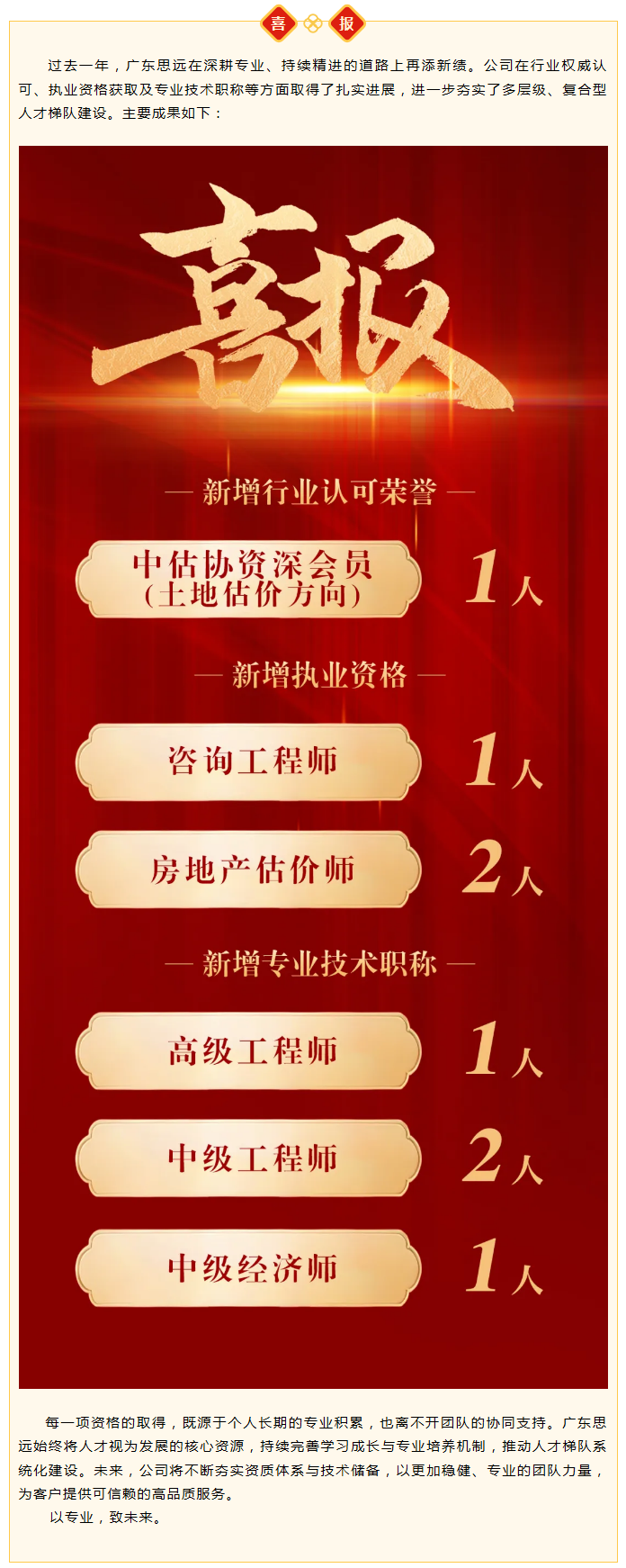 喜报 | 2025年广东思远员工喜获多项执业资格、职称及行业荣誉